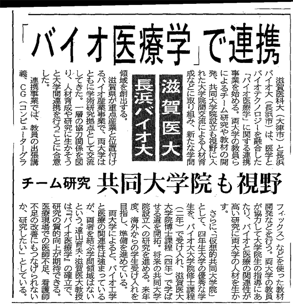 馬場忠雄医科大学学長が代表で、遠山教授が取り扱い担当者であるびわこバイオ医療