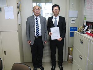 柳沢大治郎助教が、神経難病病因学分野准教授に昇任し、塩田学長から辞令が交付されました。
