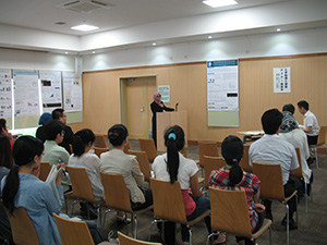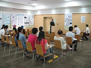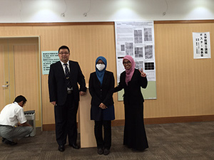 大学院生ポスター発表会で3年生の楊銘春(Yang Mingchun)君、Nor Faeizahさん、2年生のLina Watiさんが、研究成果を発表しました。活発な質問が出て、論文作成に向けてとても参考になりました。