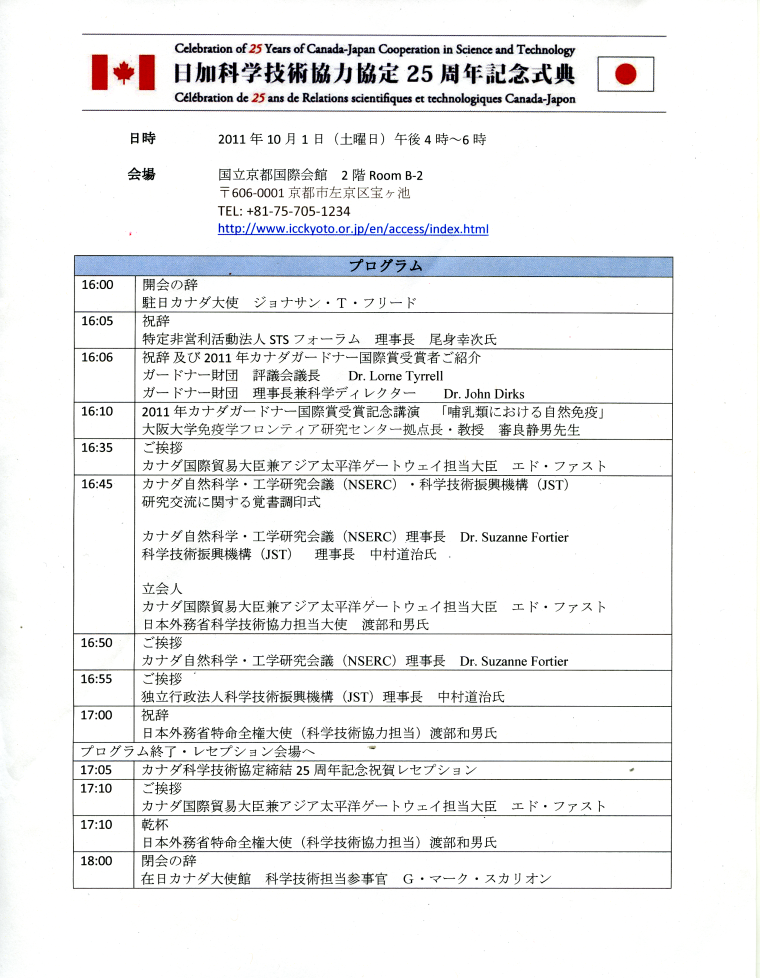 ‰“ŽRˆç•vƒZƒ“ƒ^[’·‚ÆŽ½’J^y‹³Žö‚ªAƒJƒiƒ_‘åŽgŠÙ‚̵‘Ò‚Å“ú‰Á‰ÈŠw‹Zp‹¦—Í‹¦’è‚Q‚TŽü”N‹L”OŽ®“T‚ÉŽQ‰Á‚µ‚Ü‚µ‚½B