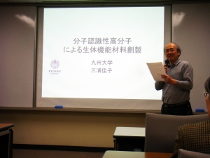 ■ 日 時: 平成24年3月21日(水)17:00 ~ ■ 場 所: 基礎研究棟2階 教職員ロビー ■ 演 題: 分子認識性高分子による生体機能 ■ 演 者: 三浦 佳子(九州大学大学院 工学研究院 教授)