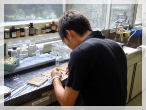 熱心に実験に取り組む学生たち。