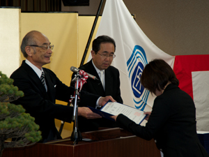 学位授与式ならびに学長賞授与式にて、大学院生亀島直子さんに医学博士号が、