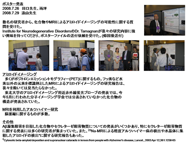 遠山教授、田口客員教授、雨坪研究員が、第11回国際アルツハイマー病会議(ICAD2008)に参加し、ポスター発表を行いました。