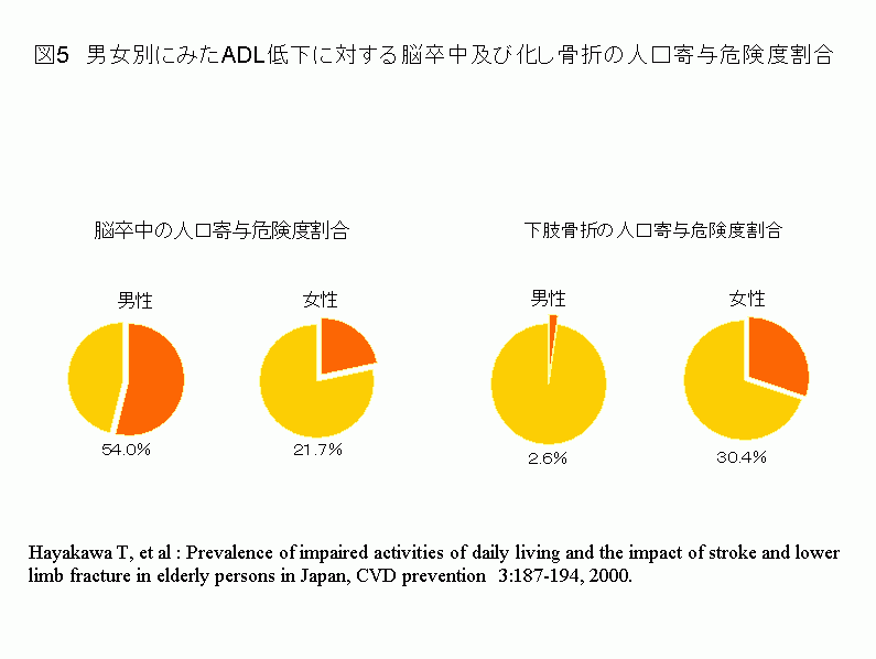 図5 男女別にみたADL低下に対する脳卒中及び化し骨折の人口寄与危険度割合
