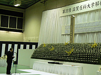 10月22日(月)午前10時から本学体育館において、ご遺族、ご来賓、しゃくなげ会会員及び教職員・学生600余名の参列の下に、第33回滋賀医科大学解剖体慰霊式を執り行いました。このたびは系統解剖56霊、病理解剖23霊、法医解剖86霊、計165霊を新たにお祀りし御霊のご冥福をお祈りしました。