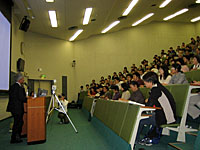 臨床講義室では、アフガン難民の診療に携わる中村哲医師を迎えて「医は国境を越えて〜アフガニスタンの診療現場から〜」と題した講演会を開催しました。会場は約230名の参加者で埋めつくされ、講演のすばらしい内容に大盛況でした。