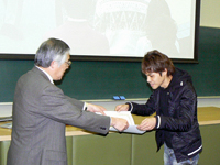 当日は、これまで医療人GPのプログラムとして行ってきた「患者様訪問実習」について、4組の学生グループから発表があり、一般市民、学生、全人的医療推進審査委員、合わせて300人を超える投票により1組のグループが選ばれ、吉川隆一学長から全人的医療推進賞が贈られました。