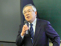 講演では、教員時代に取り組んだ糖尿病性腎症についての研究や、学長として在任中の7年間に取り組んできた活動を振り返りながら、ユーモアを交えてお話しされ、最後に教職員に向けて「個性を磨き、特徴を示せ」とのメッセージを語られました。