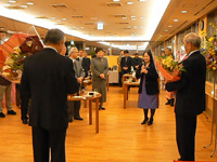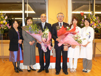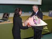 お話しの後には関係者からいくつもの花束が贈られ、会場に詰めかけた150名を超す教職員、学生らから惜しみない拍手が送られました。