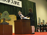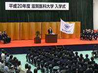平成20年度入学式が、4月8日(火)に本学体育館で挙行され、医学科学生85名、看護学科学生60名、看護学科編入学生10名、大学院生(博士課程)27名、大学院生(修士課程)15名の新入生を迎え入れました。