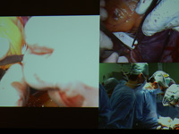 本学附属病院手術室での浅井教授(心臓血管外科学講座)による手術が、ライブ中継により会場(メルパルク京都)に映し出され、多くの医療関係者の目に触れる機会となりました。