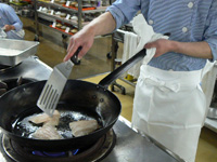 附属病院で入院患者さん向けの給食に導入している選択メニューの1つとして、5月21日(水)の昼食に「ブラックバスのムニエル」を提供しました。