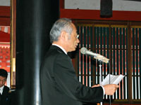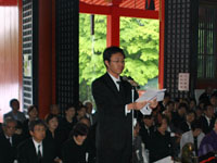 今回お祀りした56柱の御霊に対し、馬場学長が、故人の御遺志に感謝し、今後とも人々の健康を守るべく、真心のこもった医療を提供し、あるいは研究者として病気の原因や診断、新しい治療の開発に懸命に努力を払っていくと今後の決意を述べられました。続いて、学生代表加藤寿一さんが、今後とも生命に対する敬意の念を忘れることなく、故人の御遺志に恥じることがない医師となるべく生涯努力しつづけることをご霊前に誓いました。