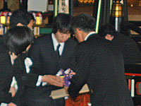 法要終了後、引き続き文部科学大臣の感謝状がご遺族代表に贈呈されるとともに、学生の手でご遺骨が返還されました。
