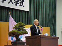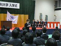 入学式では、馬場学長から告辞があり、「絶えず考え、苦心しているところにはじめて幸運の女神が訪れるのであると思います。努力せずには、決して女神に会うことはありません。新入生諸君は、授業はもちろんのこと、多くの人との出会いや、読書をとおして多様で柔軟な発想をもち、諦めることなく努力を重ねる強い精神力を養って下さい。」と激励しました。