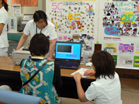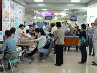午前中には、附属病院ロビーにて、血圧測定、骨密度測定、体組成測定、血管年齢測定などの健康チェックを実施しました。大変多くの方に参加いただき、順番待ちの列ができるほどでした。