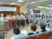 午後からは「アンサンブルYUU」の皆さんによる合唱コンサートが開かれました。入院患者さんをはじめ、たくさんの方々が来場され、みなさん、美し歌声に聴き入っておられました。