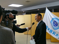 今回、学位を取得された山崎 滋さん(満61歳)は、本学においてこれまでで最高齢での博士号取得者で、当日は報道機関各社が取材に訪れました。