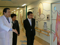 当日は、滋賀県選出の国会議員、地方自治体(滋賀県、大津市、草津市、守山市)、滋賀県医師会等の来賓をお招きし、最新設備が整備された新手術室、及び小児科病棟のNICUや廊下・壁・天井に描かれた「小児アート」を内覧していただきました。