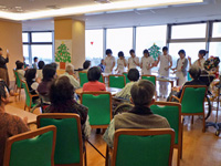 会場には透き通るような鈴の音が響き渡り、詰めかけた入院患者さんらは手拍子を打 つなど思い思いに楽しんでおられ、アンコールの声が掛かるなど、盛況のうちに終了 しました。