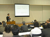 今回のフォーラムは、文部科学省および経済産業省が実施する「地域中核産学官連携拠点」に、本学・滋賀県等が「しが医工連携ものづくり産学官連携拠点」として採択されたことから、『医工連携ものづくりの発展に向けて』と題して開催され、拠点事業の概要紹介や平成20年度のJST「シーズ発掘試験」の研究成果報告が行われました。