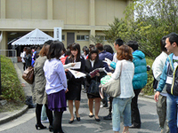 クラブの勧誘を受ける新入生