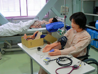「看護スキルズラボ」とは、人体模型4体と実践的な看護トレーニングができる機器を備えた技術訓練室です。現役看護師のキャリアアップ・看護の質の向上のための訓練や技術習得のために活用するほか、本学看護学科学生の実習等にも用いる予定です。