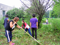 梅雨の合間を縫って行われた短時間での一斉清掃でしたが、参加者は更衣室清掃、ゴミ収集、草刈りと蒸し暑さの中でも真剣に取り組んでいました。