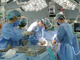 平成22年7月28日、「第1回日本Advanced Heart & Vascular Surgery/OPCAB研究会」(滋賀医科大学心臓血管外科主催)において、本学附属病院新手術棟にて2例の心臓外科手術の映像を生中継(ライブデモンストレーション)いたしました。手術室には、国内およびアメリカ、イタリアからゲストの心臓外科医、循環器内科医をお招きし最新の手術に対してコメントをいただきました。