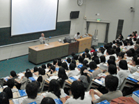 午前中は、学長のあいさつに続き、大学の概要を映像で紹介、入試情報やカリキュラ