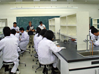 2日目は、医学コース・看護学コースにわかれ、講義や実習を行いました。医学コースでは、生化学・分子生物学講座 堀池 喜八郎 教授による「生きるためには食べなければならない」の講義ののち、教員の指導のもと実験実習を行いました。