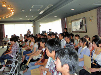 文部科学省に学生支援GPとして選定された『地域「里親」による医学生支援プログラム』(略称「里親GP」)の事業として、「彦根・米原・伊吹山方面の医療と歴史・文化を学ぶ」と題し、8月26日(木)〜27日(金)の2日間、宿泊研修を実施しました。大変な猛暑の中でしたが、学生・教職員合せて、過去最高の55名という大人数での研修となりました。
