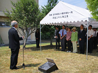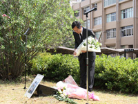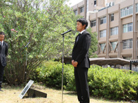 当日は、真夏を思わせる猛暑の中、嶋岡さんの御家族、馬場学長、ヨット部OB他関係者約40名の列席があり、 ヨット部主将の医学科第3学年 井本 博之 君から部活の安全対策に対する誓いの挨拶等が行われました。