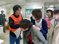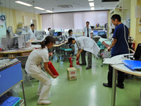 | トリアージ訓練(治療優先度により患者さんを振り分けます) |