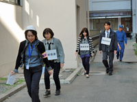 | 屋外に避難する学生 |