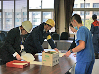 11月19日(金)に緊急時通報訓練及び地震防災訓練を実施しました。緊急時通報訓練として、大学構内において爆発があり、職員2名が負傷したとの想定で、緊急連絡網による連絡訓練、災害対策本部の設置及び本部要員参集訓練を早朝より実施しました。