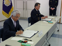 平成23年2月9日(水)、湖南広域行政組合総合庁舎(栗東市)において、湖南地域(草津市・守山市・栗東市・野洲市)の局所災害時における医師派遣出動要請合意書の調印式が、中野 宗城 湖南広域消防局長と柏木 厚典 本学附属病院長との署名・押印により執り行われました。