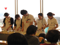 演奏会では、「となりのトトロ」「ドレミの歌」「ひな祭り」などの歌を楽器の演奏に合わせて、みんなで口ずさみ、引き続き行われたバルーンアートのイベントでは、色とりどりの風船から動物やアニメのキャラクターが次々とできあがり、子ども達は目を輝かせて楽しんでいました。