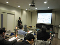 この報告会は、事業の参画者であるトーメイダイヤ株式会社、株式会社イオンテクノセンター、和光純薬工業株式会社等の他多くの参加者の下、JSTイノベーションサテライト滋賀館長のご挨拶の後、本研究課題の代表研究者である生命科学講座小松直樹准教授及び企業代表者の株式会社イオンテクノセンター応用事業部長の研究報告が行われました。