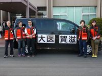 滋賀県からの要請により、4月17日(日)から福島県会津若松市で医療救護活動を行ってきた本学の医師2名(手塚 則明、稲富 理)、看護師1名(伊藤 真知子)、理学療法士1名(岩井 宏治)、事務職員1名(三四 毅)が3日間の活動を終え、4月21日(木)に無事帰学しました。