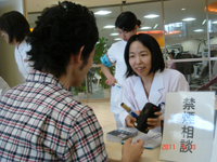 またイベントの一環で「うさぎ」と「ぱんだ」の着ぐるみを着てちらしと共に傷テープやキキララシ−ルの配布も行い、小さな子供達には大人気でした。また、BBCの取材を受け、当日18時のニュースで放映されました。