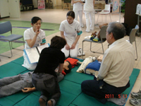 専門・認定看護師の分野では、禁煙相談、皮膚排泄ケア相談、がん相談、摂食嚥下相談、放射線看護、治験、救急看護等のパネル展示や説明会、AEDの実施を行いました。