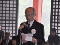続いて、学生代表 藤崎拓也君が、解剖実習で得られた知識と経験を礎として、故人のご遺志に恥じることがない医師となるべく生涯努力し続けることをご霊前に誓いました。