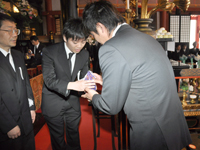 法要終了に引き続き、故人(献体者)に対する文部科学大臣の感謝状を学長からご遺族代表にお渡しし、併せて、学生の手によりご遺骨をお返ししました。