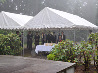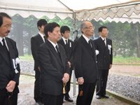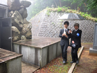 午後から予定されていた比叡山横川にある大学霊安墓地での納骨式は、あいにくの天候のため、ご遺族の皆様方にはご参列いただけませんでしたが、学長、副学長、しゃくなげ会理事長、学生代表2名と関係教職員が代表して墓地へ出向き、読経の中、焼香を行った後、分骨いただいたご遺骨を学生代表らがお一人ずつ納骨堂にお納めしました。