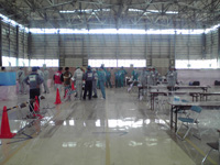 現地では、福島市内の福島県自治会館を拠点に、双葉郡広野町の広野町中央体育館、南相馬市の馬事公苑、双葉郡川内村の村民体育センターを巡回し、およそ460名の一時帰宅者に対してスクリーニングを行いました。