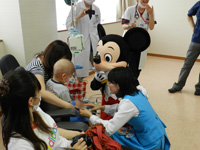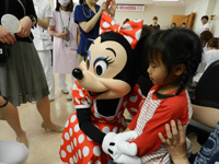 多くの子供達は、笑顔いっぱいになり、ミッキーマウス・ミニーマウスから元気をいただきました。また、付き添われているお母様も、ミッキーマウスと握手し涙ぐまれ元気になられました。