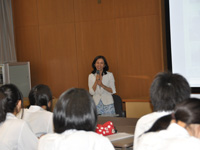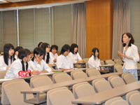 二日とも、服部副学長から歓迎のご挨拶をいただいた後、講師担当の看護学科のお二人の先生方から約1時間にわたって講義いただきました。
