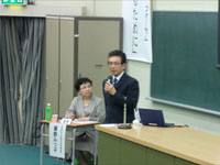 後半は、「臨床での看護師教育を改革するために」というテーマでシンポジウムを行いました。滋賀県健康福祉部医務薬務課中西京子副参事が「看護教育の現状と今後」、本学看護学科学科長瀧川薫教授が「基礎教育の立場から」、京都府立医科大学附属病院橋元春美副看護部長が「京都府立医科大学附属病院の取り組み」、本院看護臨床教育センター澤井信江センター長が「本学の取り組み」について発言をしたのち、参加者と活発な意見交換を行いました。特に学外の看護教員には、今後の本学の取り組みに大きな期待をしていただいたようでした。